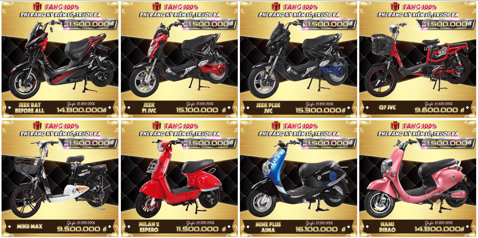 Giá xe máy điện và xe máy 50cc của hệ thống Thế Giới Xe Điện